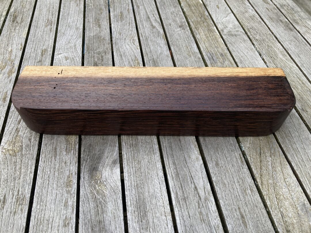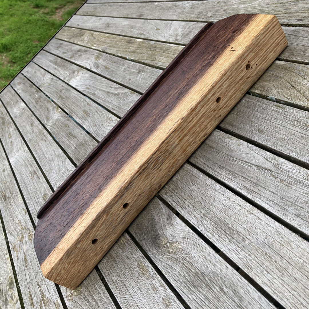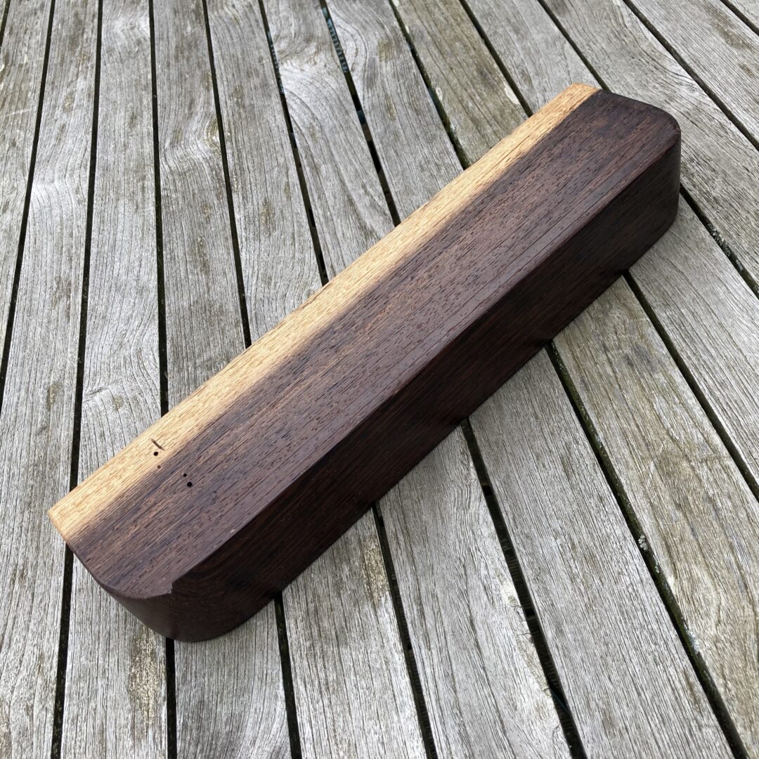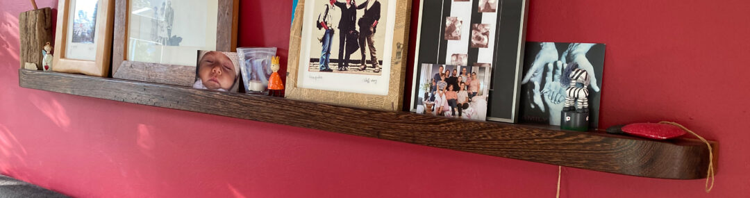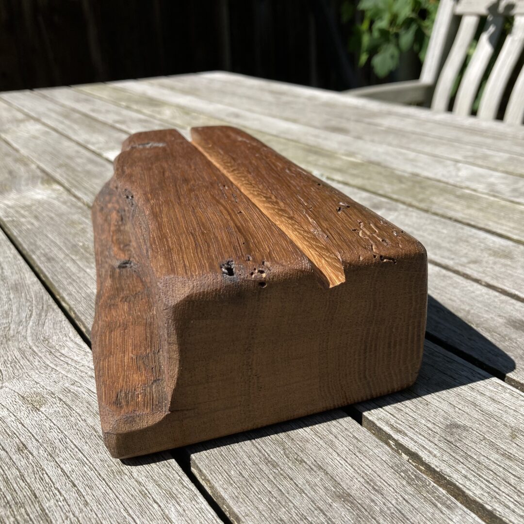 #4: Wandregal Wenge 410 x 100 x 50 mm Aus geerbter Bohle von Vaters Dachboden (enthalten: 2 Stockschrauben und 2 Dübel zur Befestigung an der Wand) geölt und gewachst (Auro) von links von hinten von vorn Anwendungsbeispiel (mit längerem Teil der Bohle) von rechts von oben von unten #1: Tablet-Halter Eiche 228 x 110 x 60 mm, Nut 9 mm ehemals Scheunenbalken Teilweise (hinten) alter Zustand erhalten Nimmt alle gängigen Tablets in waagerechter und senkrechter Position auf geölt, gewachst (Auro) waagerecht rechts links senkrecht. „falsch“ rum drin. geht auch.