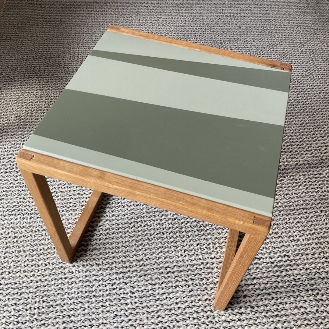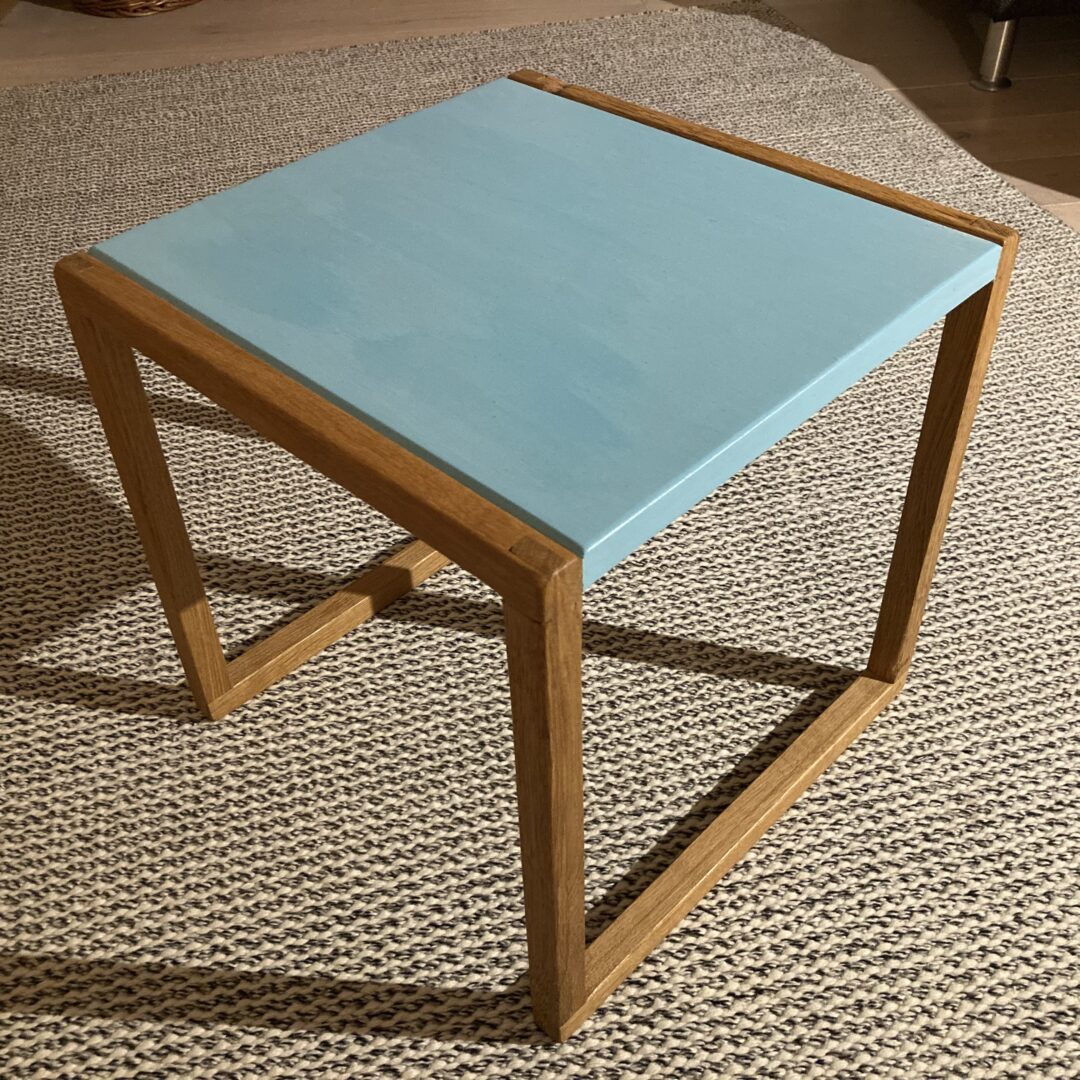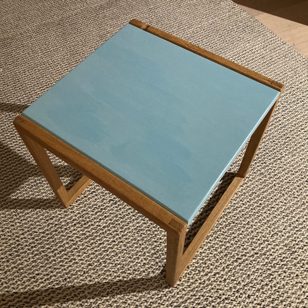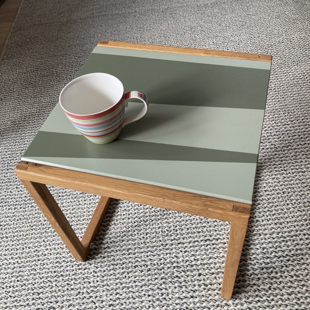 Platte: lackiert mit selbst angemischter Farbe plus mattem Klarlack