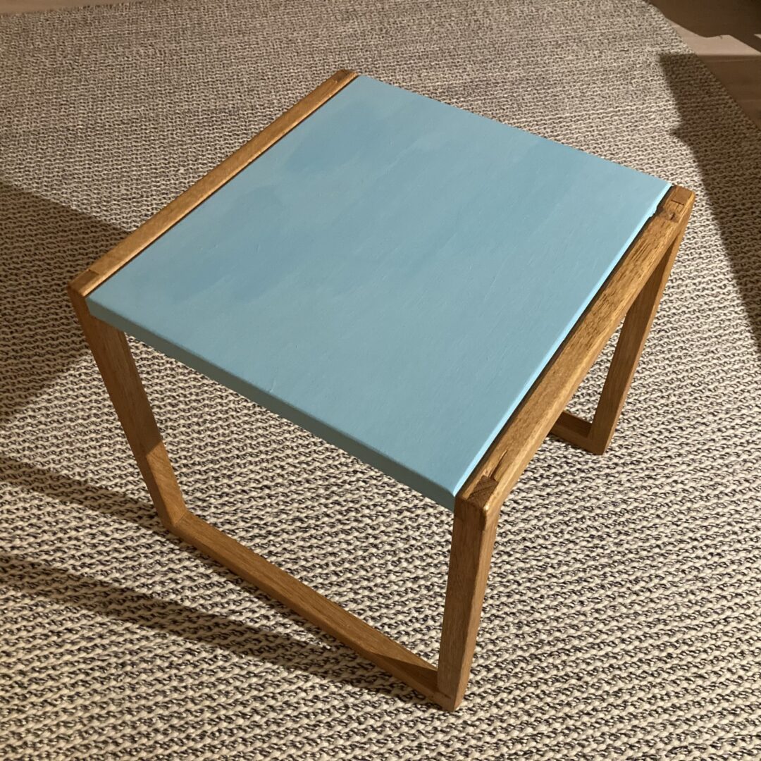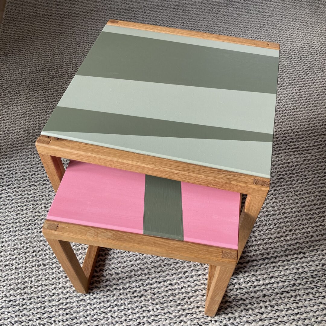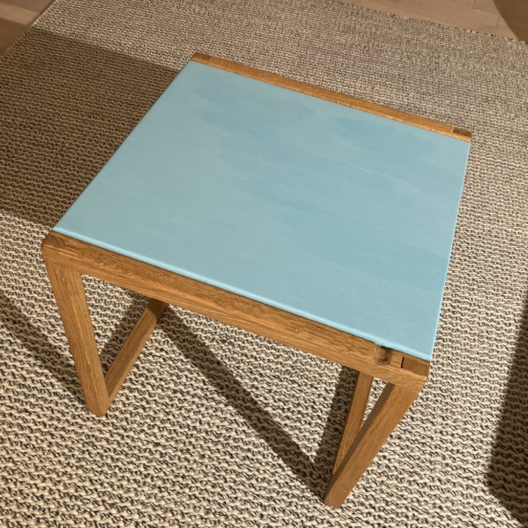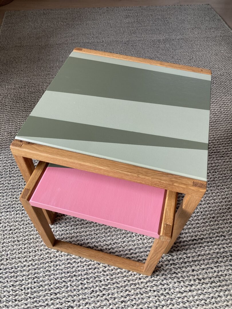 Platte: lackiert mit selbst angemischter Farbe plus mattem Klarlack