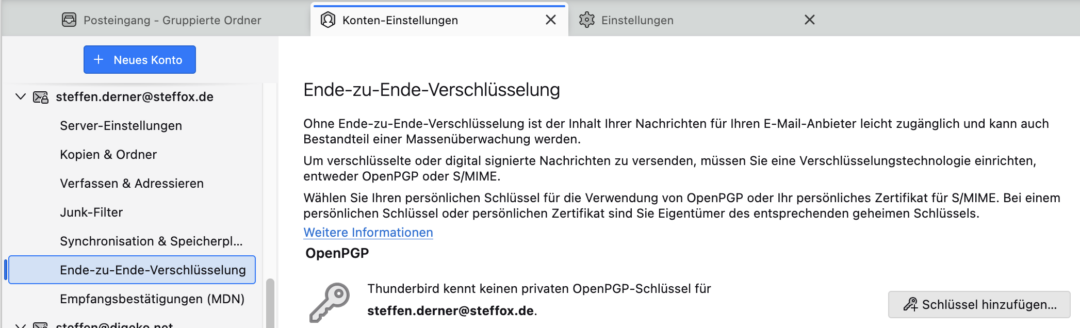 Es gibt auch andere Mailclients, die mit PGP umgehen können. Thunderbird macht es uns wohl am einfachsten.