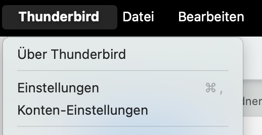 Nachdem Du Dein Mailkonto in Thunderbird eingerichtet hast, gehst Du zum Menü-Eintrag „Konten-Einstellungen“