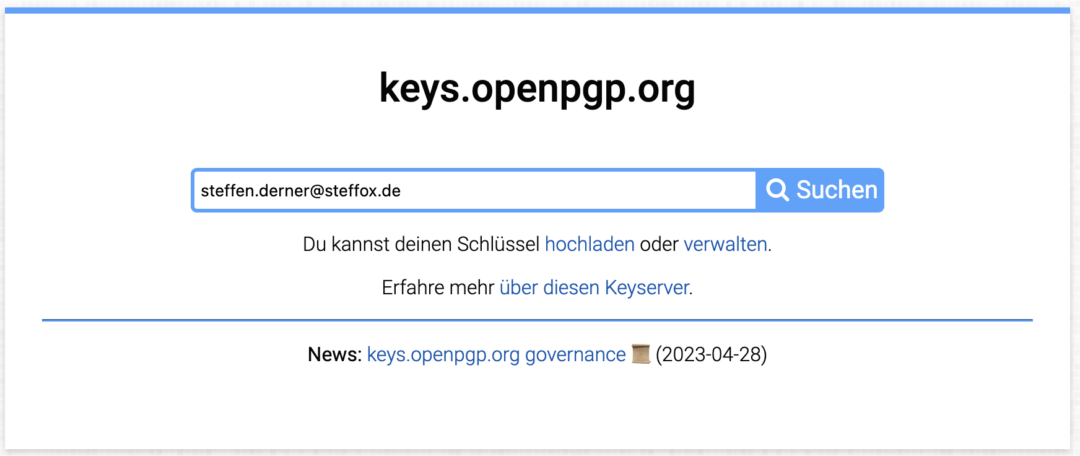 Nach dem Veröffentlichen erhältst Du eine eMail von openpgp.org: