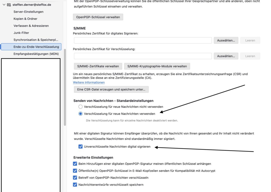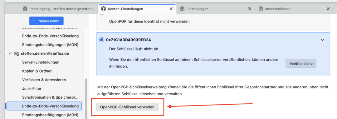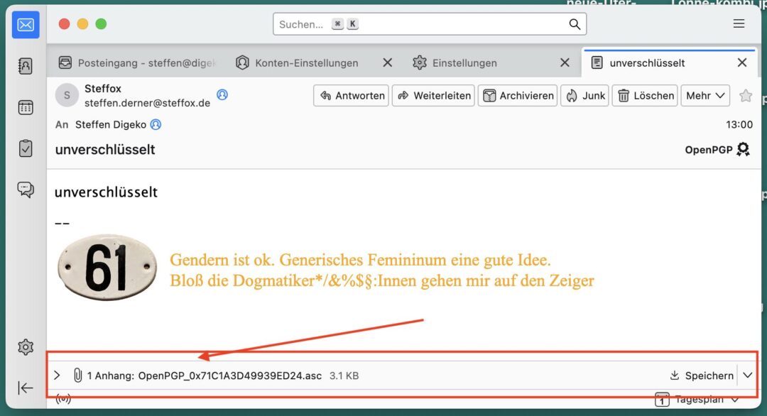 Ab jetzt schickst Du wahlweise verschlüsselte oder unverschlüsselte eMails (je nachdem, ob Du einen öffentlichen Schlüssel des Empfängers hast).